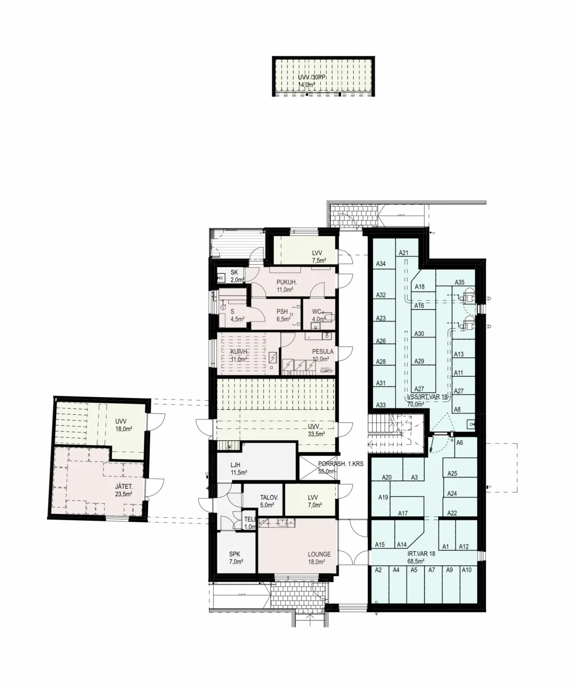 Samaan kortteliin SRV:n, Sato Oyj:n ja Espoon Asuntojen kanssa on toteutettu kolme kahdeksankerroksista pistetaloa, kuusikerroksinen lamellitalo sekä kahdeksankerroksinen lamelli. Korttelissa sijaitsee myös pysäköintilaitos, jossa on valtaosa asukkaiden autopaikoista. Korttelin sydämenä toimii yhteispiha, joka palvelee kaikkia tontteja.