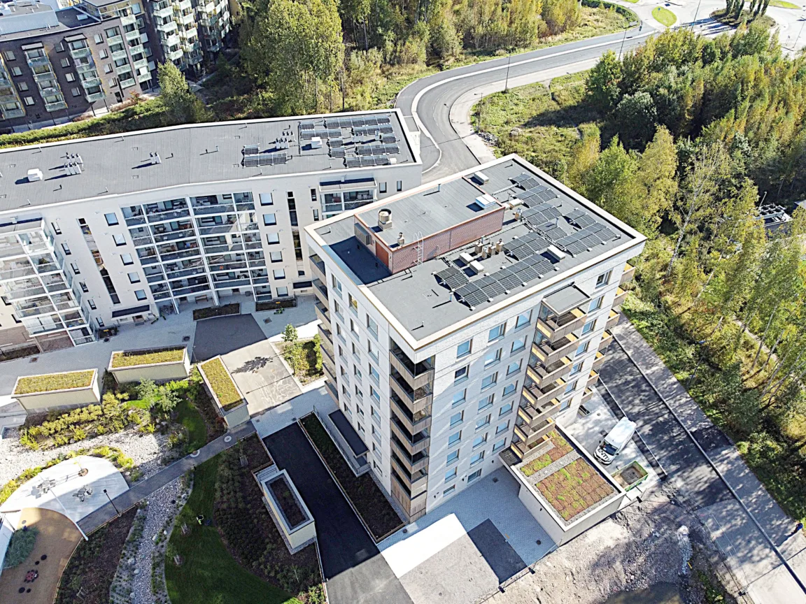 This residential building is part of a new block development in the Vermonniitty district of Leppävaara, Espoo. The block is bordered by residential buildings to the north and west, a park to the east, and sports fields to the south, creating a balanced urban environment that combines community and recreational functions.